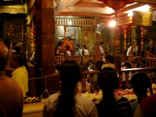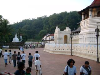 仏教国スリランカでも最大の寺、仏歯寺。仏様の歯があるらしい。1日3回くらい歯のある部屋の横で拝める。右の写真の奥のほうだが、歯そのものは見えない。熱心な仏教徒が国内からたくさん集まって祈っている。98年に大規模なテロがあったらしく、警備は厳重。入口でボディチェックがある。寺は夜遅くまで開いていて、静かできれいな雰囲気。