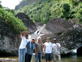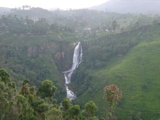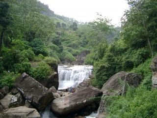 途中、Ramboda の滝にて。高さ 15m ほどだが水量が多い。泳げる。