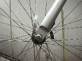 まず、車輪をはずす。車輪をはずずには、車輪の中心から伸びているレバーを手前に引く。レバーを引くと車輪は簡単にはずれる。